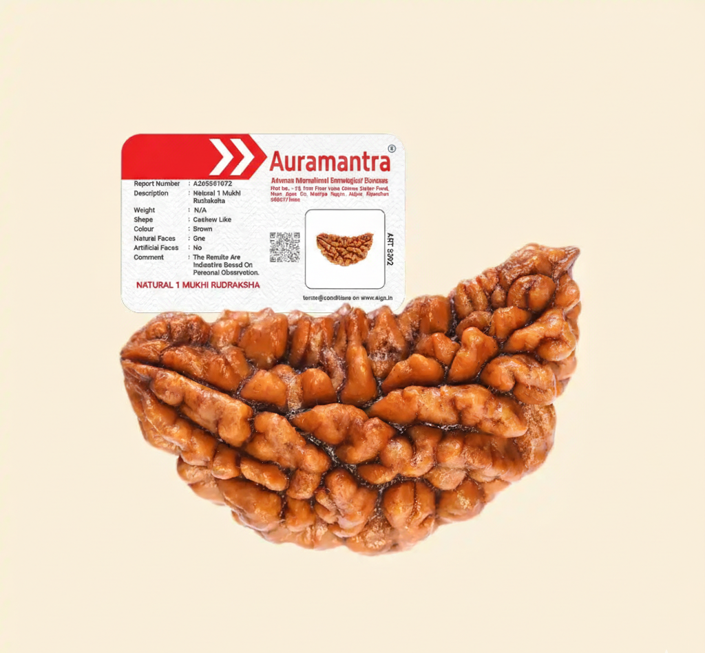 However, the Ek Mukhi Rudraksha is often called an under-developed bead because naturally, a perfect round one rarely forms. Most available beads are half-moon or cashew-shaped, with incomplete mukhi lines. Such beads carry only compared to a fully developed 1 Mukhi, making the original Nepal bead extremely rare and highly valuable.