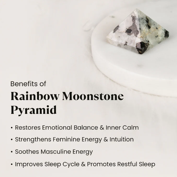 1. The Rainbow Moonstone Pyramid attracts inner peace and enhances intuitive abilities, helping you connect with your higher self.