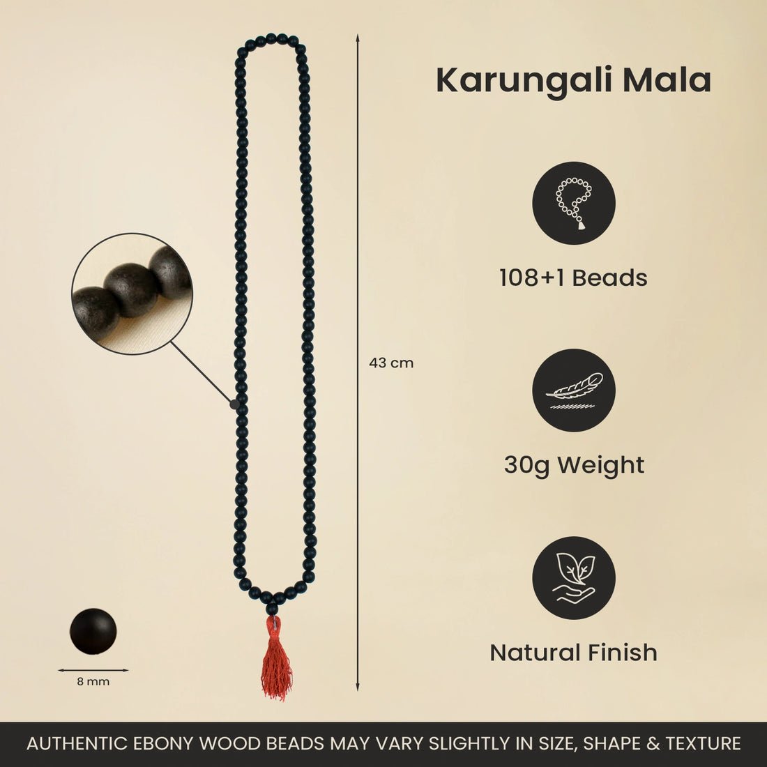 Karungali Malai (8mm) – With Free Karungali Bracelet( Govt. Certified)